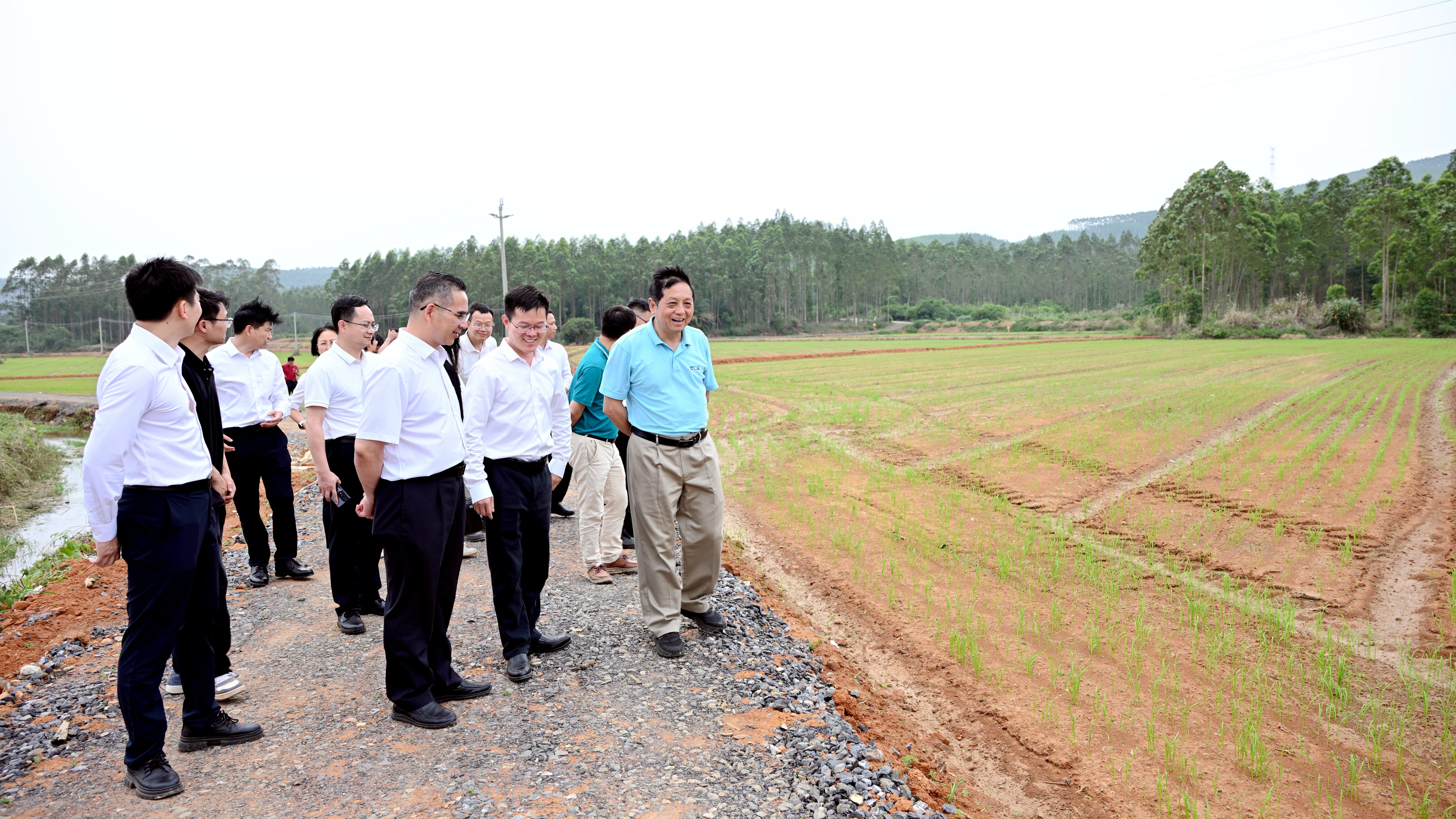 期间,陈乐天一行调研了韶关市浈江区犁市镇内腾村节水抗旱稻示范种植基地,听取了相关负责人及专家的工作汇报,了解学校“双百行动”帮扶成效。