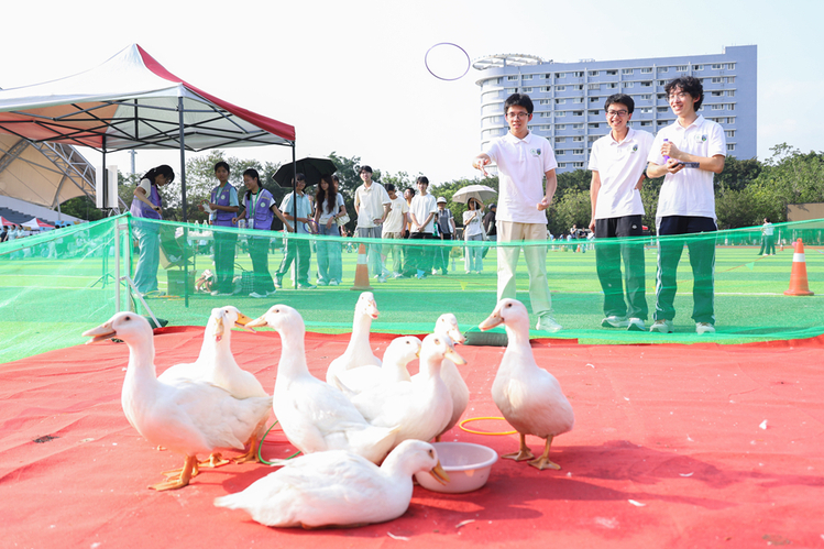赛场之外,第三届农耕趣味运动会同步火热开展,“要快乐鸭”套鸭子、抛秧赛、独轮车赛跑等6大农事特色项目备受师生欢迎。同学们化身“农耕体验官”,在套鸭嬉戏中感受田园乐趣,在抛秧、独轮车竞速中体验农事劳作,将传统耕读文化转化为趣味竞技,在欢声笑语中厚植知农爱农、强农兴农的情怀。