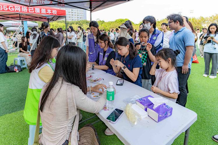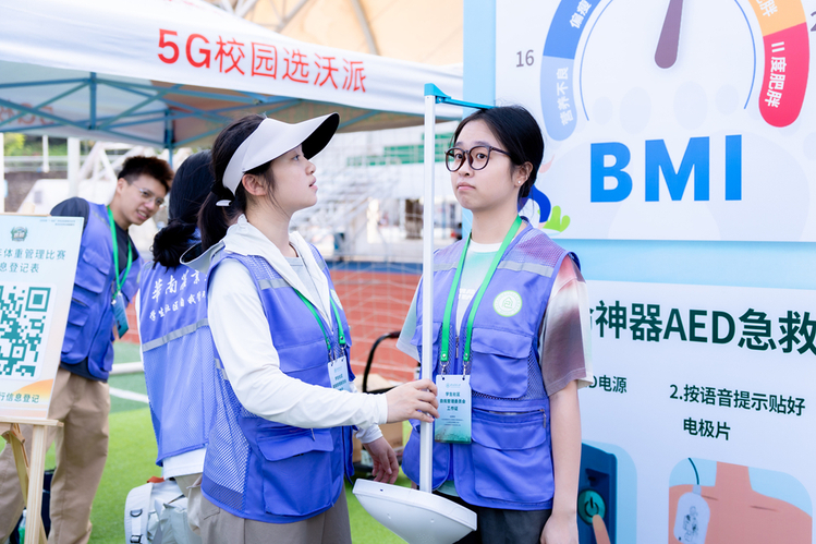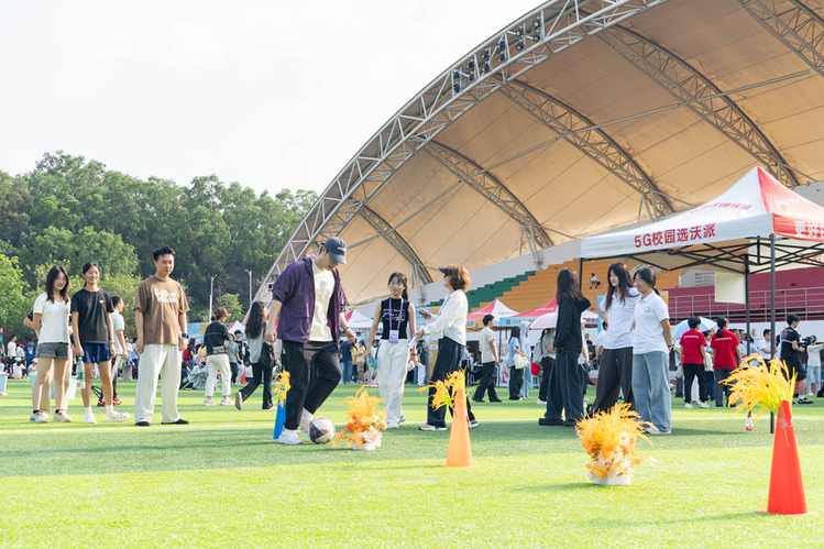同时,心理健康节游园、体重管理、AED急救教学、研究生趣味足球体验等多元活动一站式开展,植趣疗愈、压花手工、健康科普等环节,为学子提供身心放松的空间,普及健康知识与急救技能,构建“体育强体、心育润心、文化铸魂、劳动赋能”的一体化育人场景。