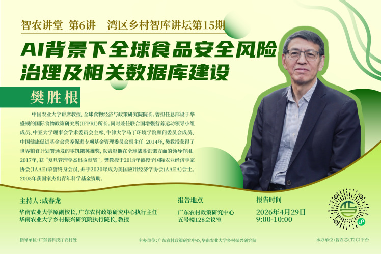【会议预告】智农讲堂第6讲 湾区乡村智库讲坛第15期:AI背景下全球食品安全风险治理及相关数据库建设