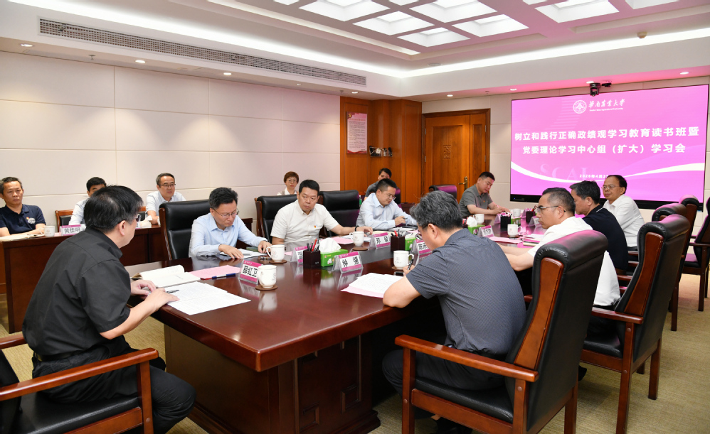 集体学习研讨阶段,副校长温小波,省纪委监委驻华南农业大学纪检监察组组长、党委常委、纪委书记邓硕,党委常委、副校长陈乐天,党委常委、组织部部长杨志群分别围绕研讨主题作重点发言,并领学《习近平关于树立和践行正确政绩观论述摘编》第二、第五和第七章。其他中心组成员及列席人员作交流发言。