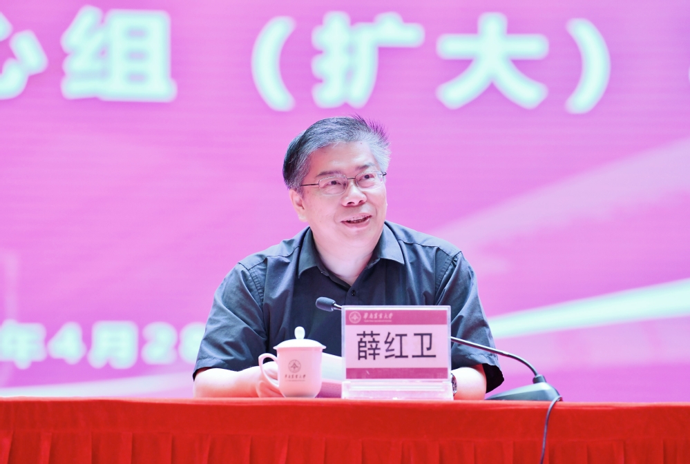 为深入学习贯彻习近平总书记关于制定实施“十五五”规划的重要论述和重要指示精神,树立和践行正确政绩观,加快推进学科交叉融合,4月28日,学校举行树立和践行正确政绩观学习教育第二期读书班暨党委理论学习中心组(扩大)学习会。受学校党委书记李凤亮委托,校党委副书记、校长薛红卫主持会议并讲话。