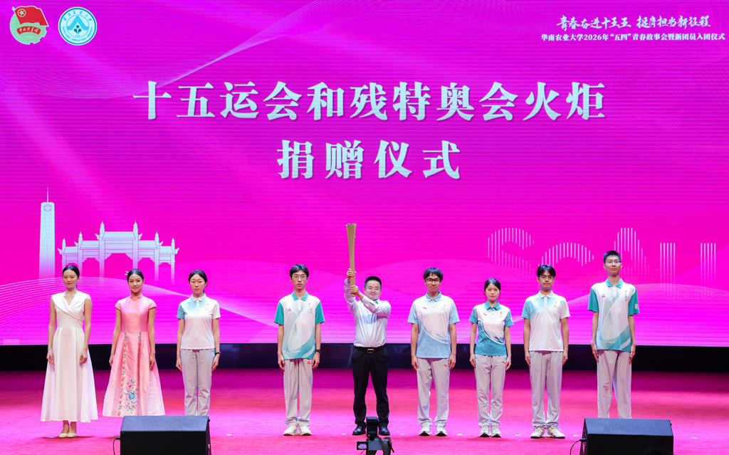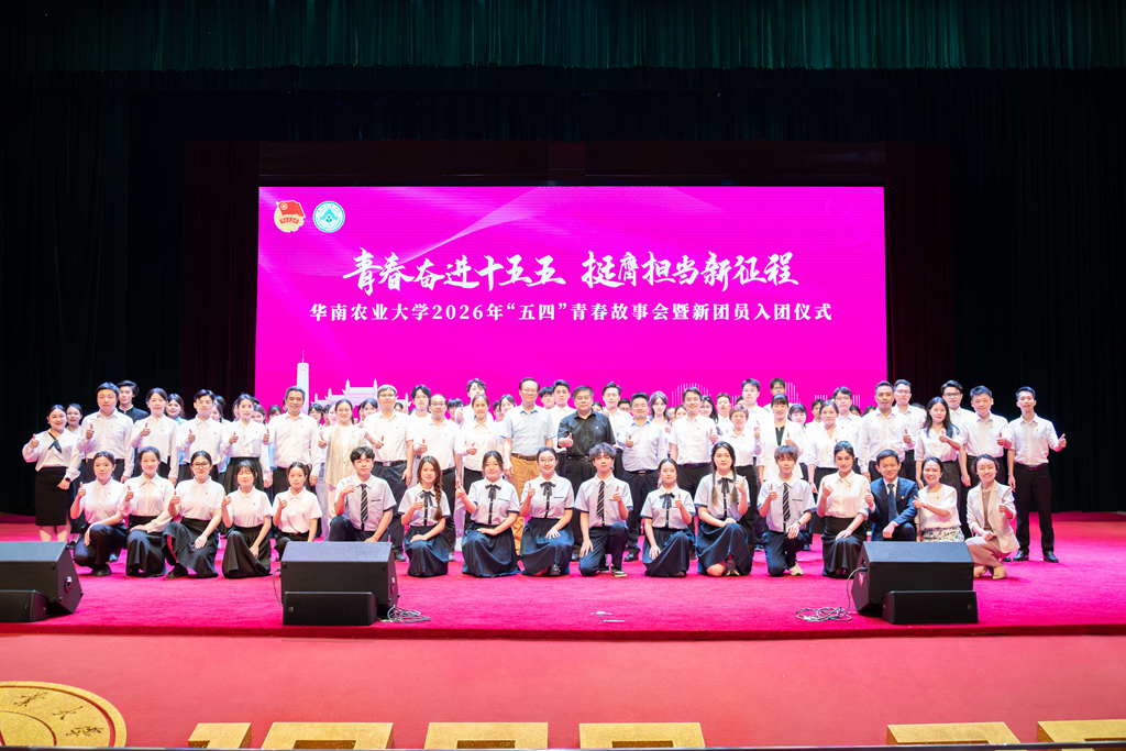 4月28日,华南农业大学在丁颖礼堂举行“青春奋进十五五 挺膺担当新征程”2026年“五四”青春故事会暨新团员入团仪式。中国工程院院士陈勇作主题分享,近千名新团员庄严宣誓,一批先进青年集体和个人获表彰,现场还举行了十五运会和残特奥会火炬捐赠仪式。